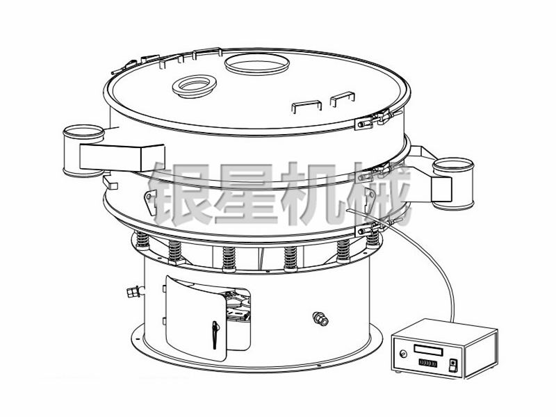 旋振篩的基本回轉(zhuǎn)運動與人工篩分相似,利用380V電動機帶動擺振體來產(chǎn)生三維搖擺作用,三維搖擺使物料在篩網(wǎng)上呈現(xiàn)弧形漸開線搖擺運動軌跡,物料在搖擺運動過程中達到預期篩分過濾的效果。搖擺旋振篩本身的運動軌跡為橢圓型,每一種產(chǎn)品的停留時間可以調(diào)整擺振體上面的經(jīng)向角和切向角可改變物料在網(wǎng)面上的運動軌跡,偏心率從25到40mm可調(diào),低速V型皮帶驅(qū)動從120到360rpm可隨意調(diào)節(jié)。篩分物料從中心到外緣在篩面上均勻分散是以螺旋運動往軸向傳播形式分散,接近篩孔尺寸的顆粒隨之成功分離;較大不透篩孔顆料被運送到上篩面出口處排出,穿透過篩孔物料降落到下層篩面進行篩分。